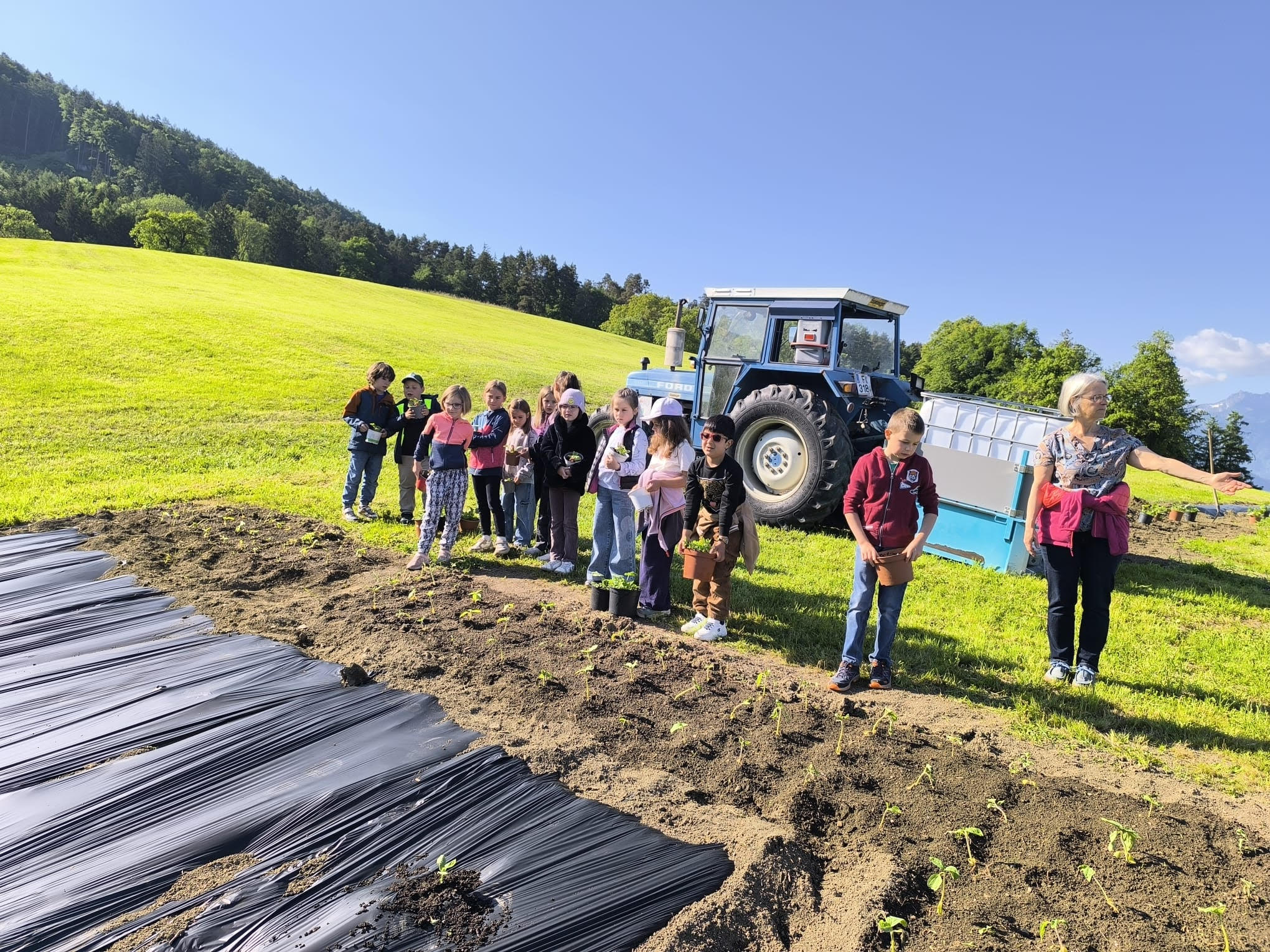 Im letzten Schuljahr konnten die Kinder der 1a bei der Familie Marte Kürbisse setzen. Am Schulbeginn waren alle Kürbisse reif und die Klasse bekam 2 Kürbisse von der Ernte. Gemeinsam wurde ein Topf mit Suppe gekocht und mit viel Backerbsen gemeinsam verspeist. Das hat gut geschmeckt.