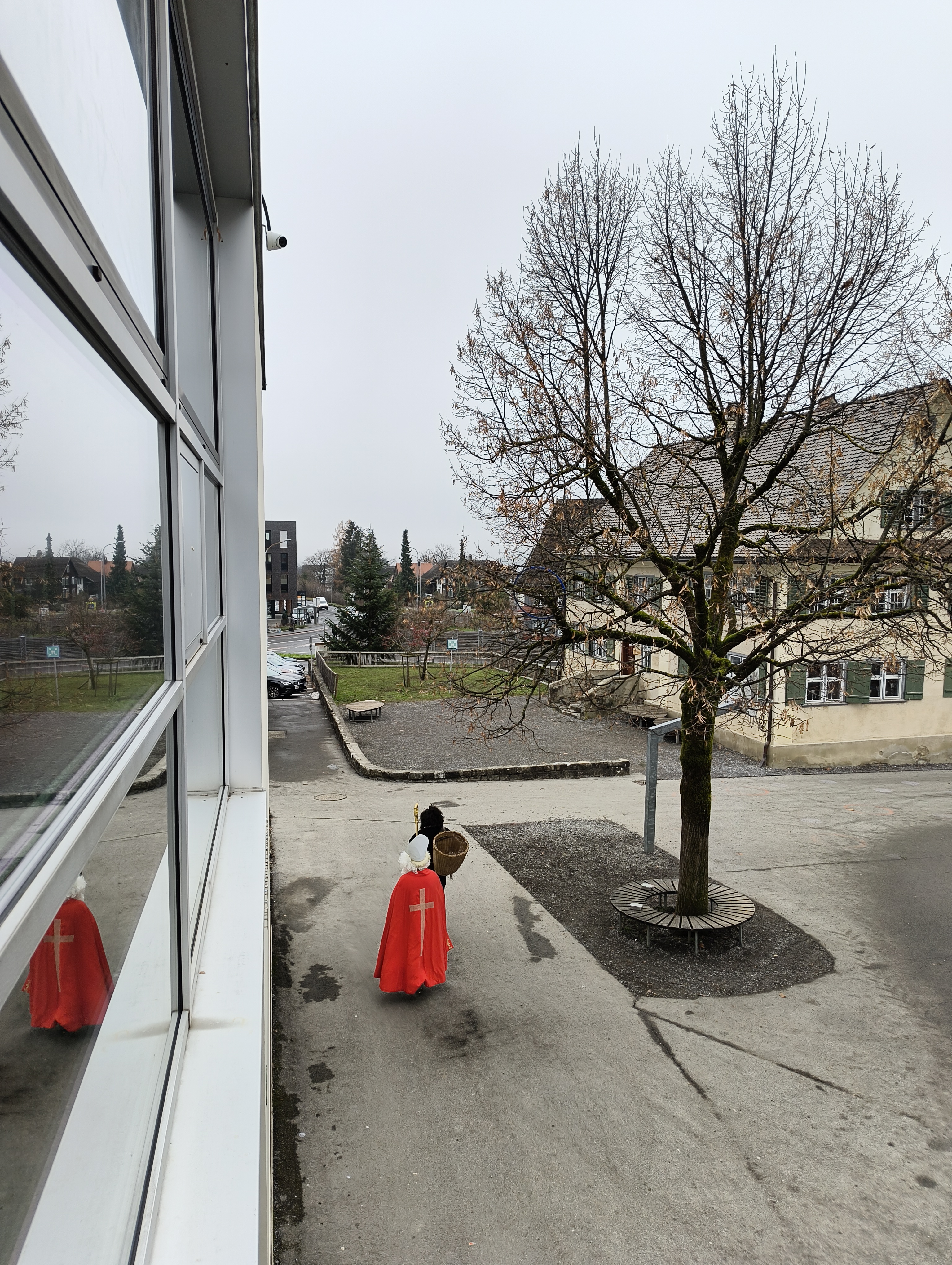 Nikolaus und sein Helfer Knecht Ruprecht haben uns in der Schule besucht. Die Kinder haben sich mit den Lehrpersonen mit Gedichten und Liedern darauf vorbereitet. Wie schön und aufregend ist es, wenn Knecht Ruprecht mit seinen Schellen durchs Haus geht! Die Kinder wurden vom Nikolaus gelobt und vom Knecht Ruprecht beschenkt. Mit einem Lied oder einem Gedicht haben sie sich bedankt.